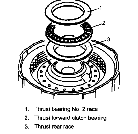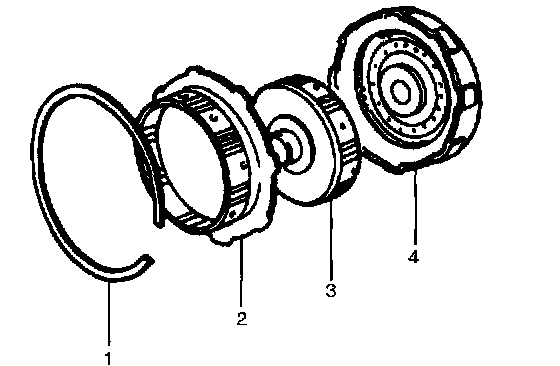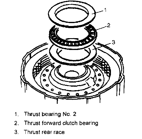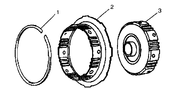 Disassembly1) After removing retaining ring (1), remove direct clutch input hub (2) and forward clutch hub (3).