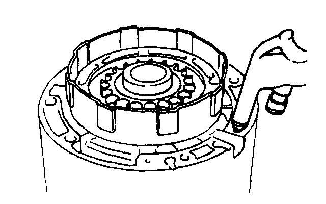 7) Using special tool and hydraulic press, compress forward clutch piston return spring and remove retaining return spring.