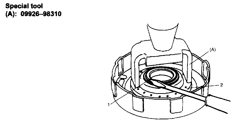 CAUTION: Be careful when applying pressure, for overpressure will cause plate section of piston return spring (2) to deform.