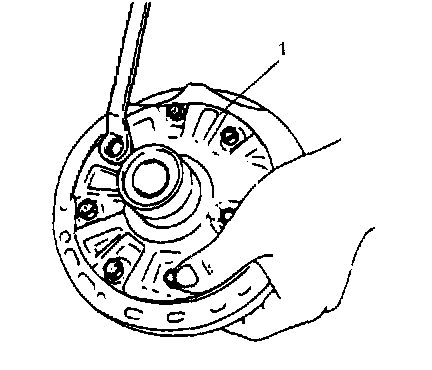 Disassembly1) Remove 6 bolts, oil pump cover (1), drive gear and driven gear in that order.