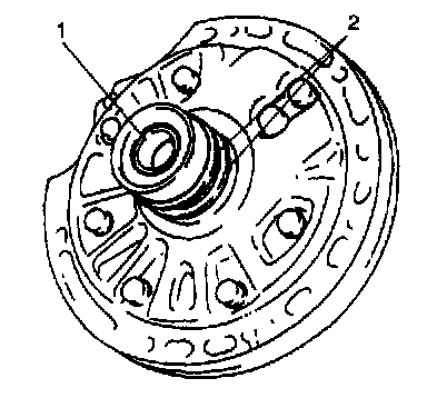 ^ Check seal ring (2) and bushing (1) for wear and damage.