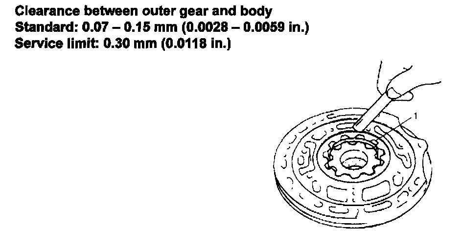 ^ Check clearance between outer gear (1) and body.