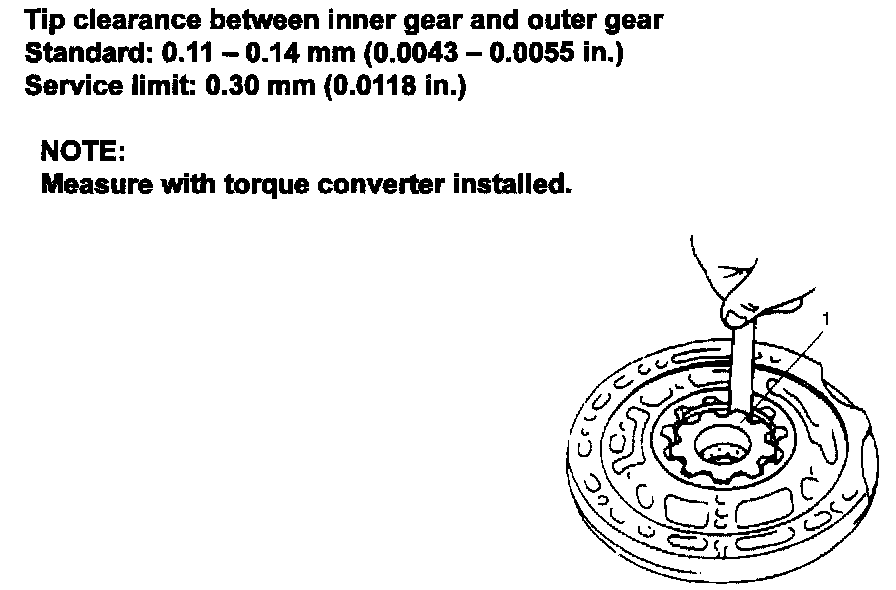 ^ Check tip clearance between inner gear (1) and outer gear.