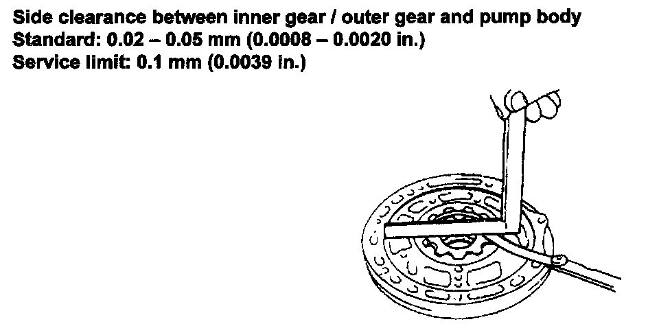 ^ Check side clearance between inner gear/outer gear and pump body.