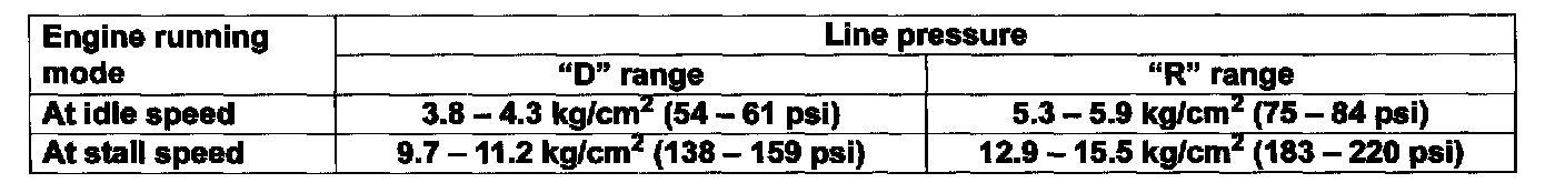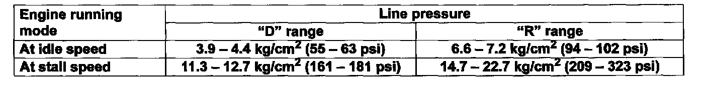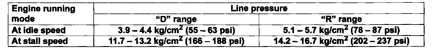 4) Check fluid pressure in "D" or "R" range within the following specification.