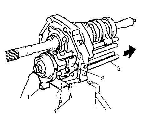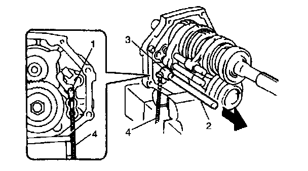 NOTE: When pulling gear shaft, hold locating roller No. 1 (1) with magnet (4) to prevent it from failing.