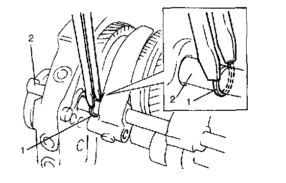 9) Remove C-rings (1) of input shaft bearing and C-ring (2) of counter shaft front bearing.