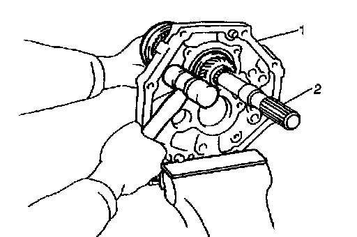 8) Install reverse idle gear (1) and shaft (2).