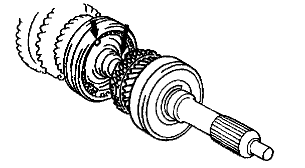 4) Align key slots of synchronizer ring and synchronizer keys and set input shaft assembly to main shaft assembly. Check that input shaft assembly turns lightly.