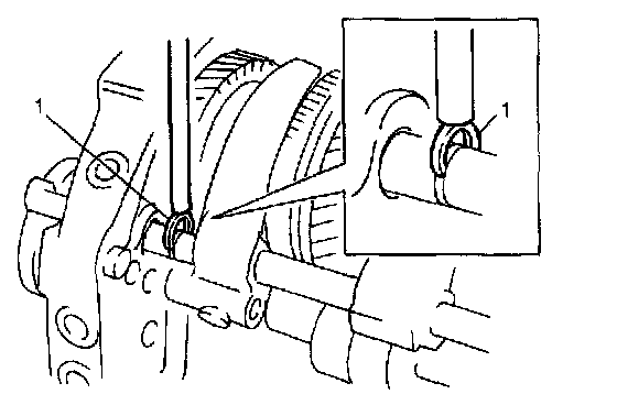 14) Select circlip (1) that will make clearance in circlip groove 0.1 mm (0.0039 inch) or less.