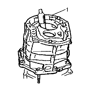 1) Set intermediate case (1) to vise (3). Clean mating surfaces of intermediate case both sides, if intermediate case is reused.