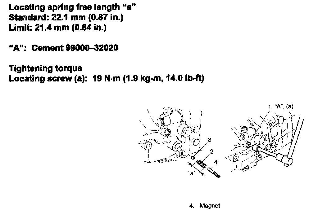 35) Install locating balls, locating springs and locating screw after checking free length of locating springs.