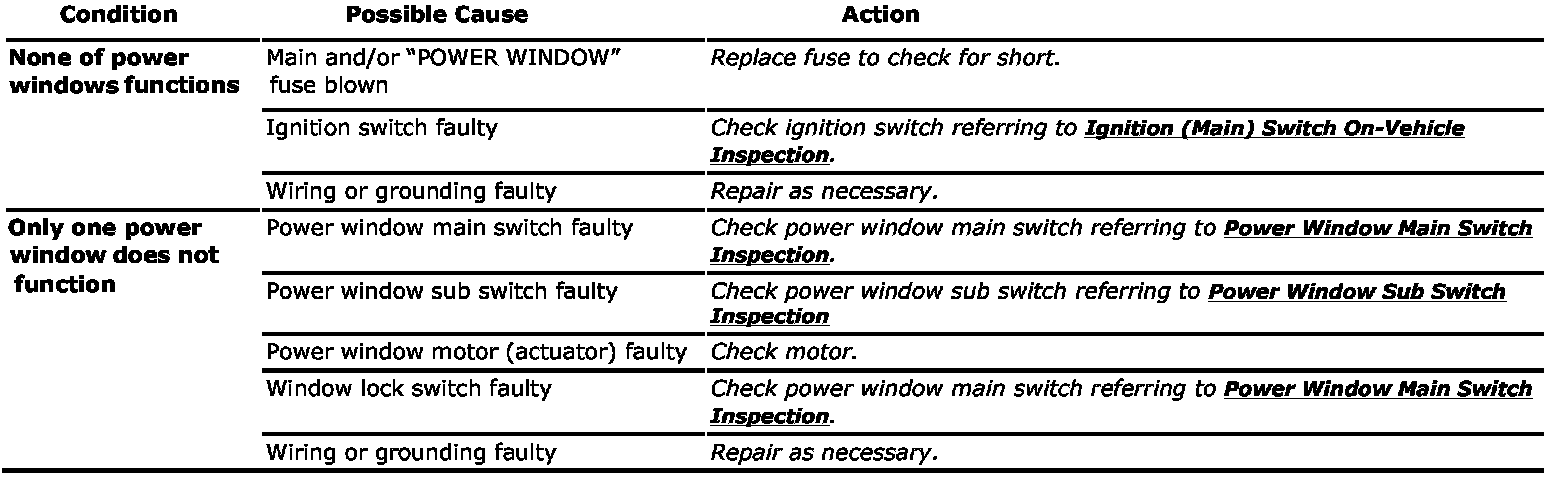 Power Window Control System Symptom Diagnosis: