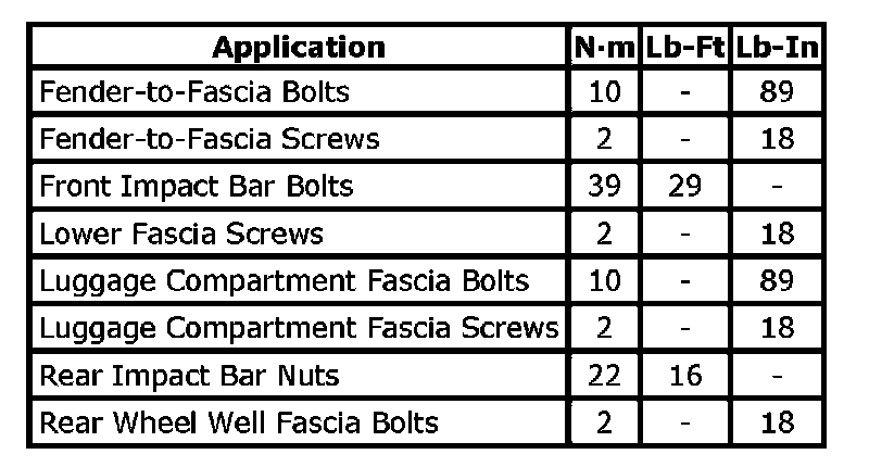 Tightening Torque Specifications: