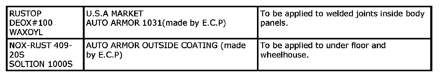 Rust Prevention DescriptionCorrosion starts immediately after the steel base contacts the atmosphere. The condition is aggravated by sea wind, road salt, rain, snow and industrial fallout. There are many ways to protect automobiles against corrosion. Primers, primer surfacers and paints are applied by electrodeposition or spray to protect the car body.