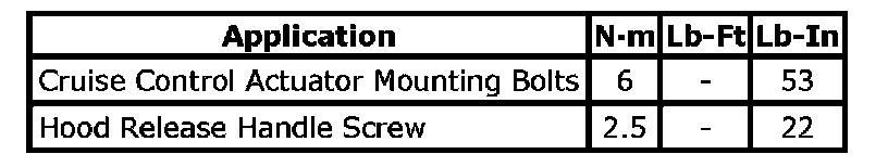 Tightening Torque Specifications: