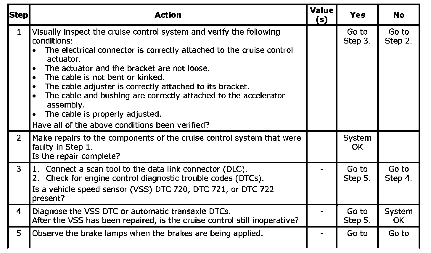 Cruise Control System Diagnosis: