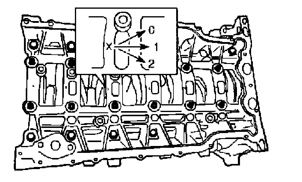 NOTE: The sizes of each upper crankshaft bearing are marked on the bed plate as shown in the illustration.