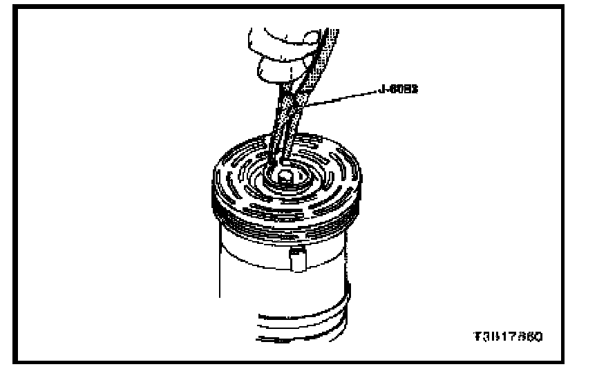 5. Remove the pulley rotor and bearing assembly retaining ring using the snap ring pliers J-6083.