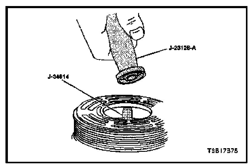 3. Attach the shaft lip seal to the seal seat remover/installer J-23128-A. Dip the seal in clean PAG oil.