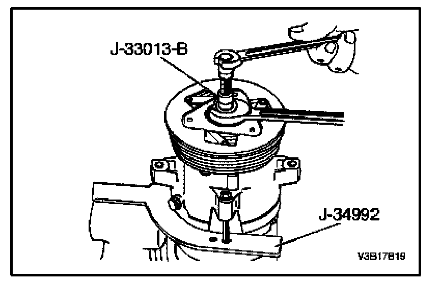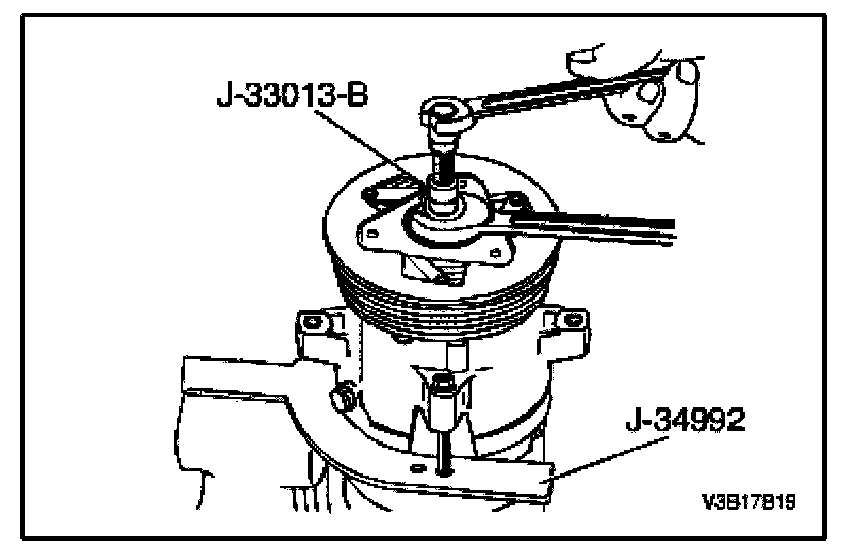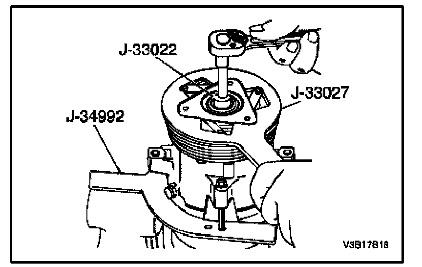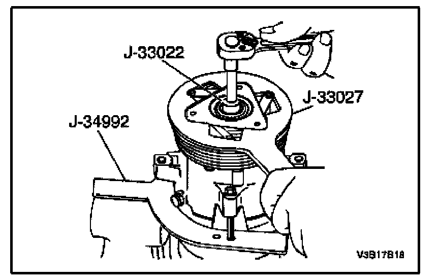 11. Remove the compressor from the bench vise and remove the J-34992 compressor holding fixture from the compressor.