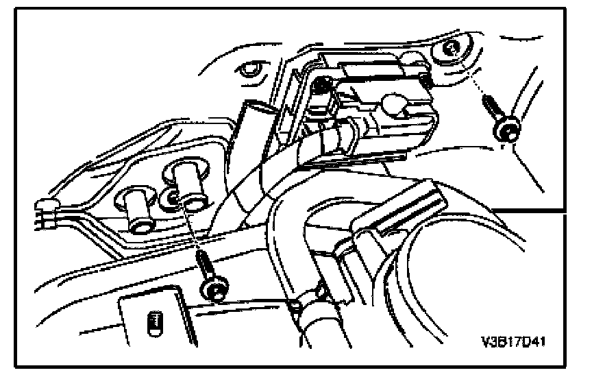 4. Install the A/C module screws adjacent to the heater hoses.
