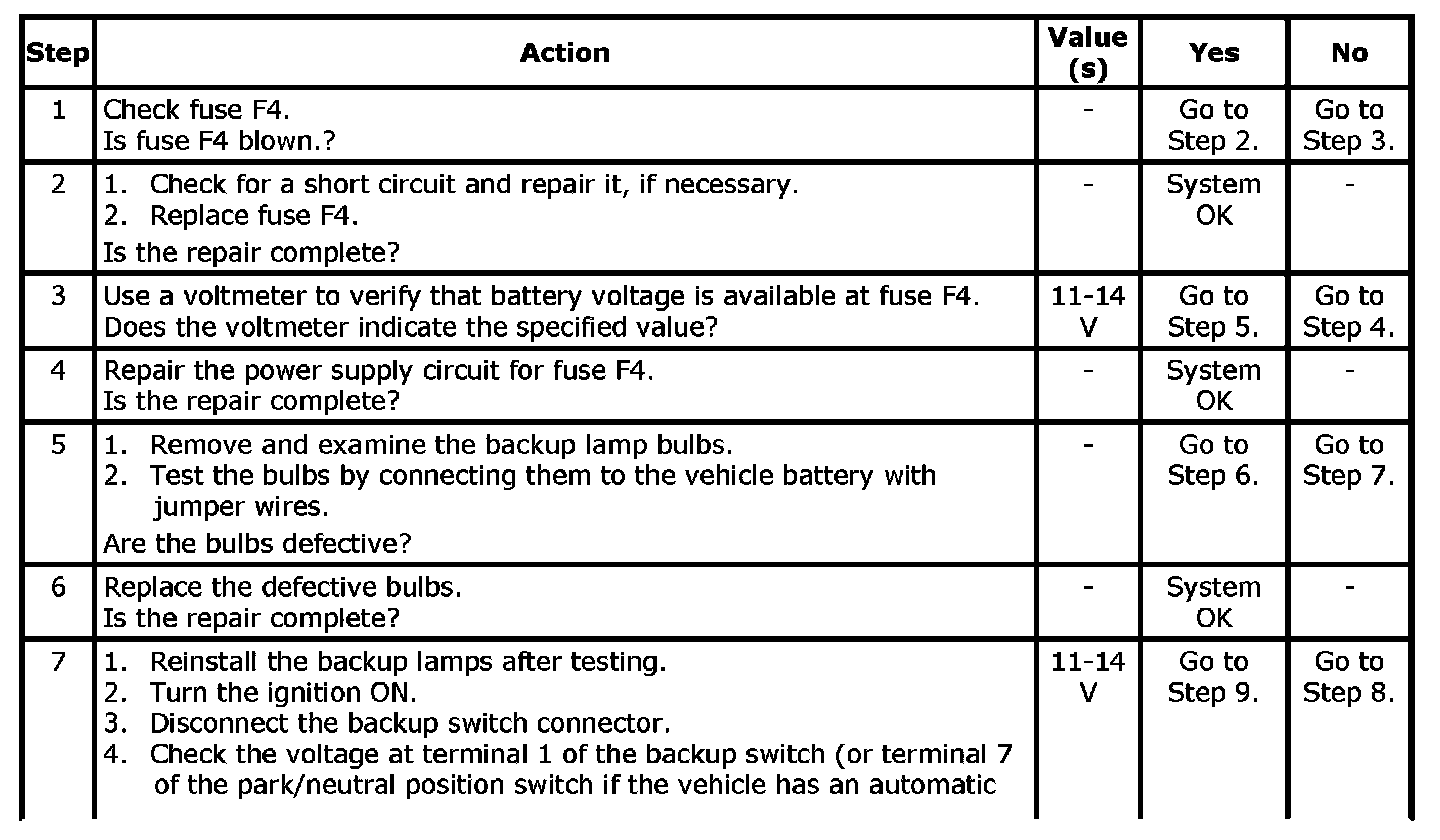 Backup Lamp: Testing and Inspection