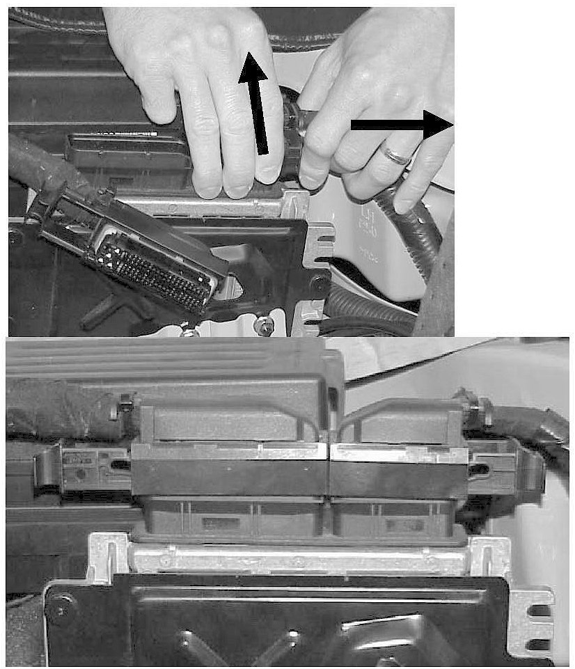 7. Reconnect ECM connectors by pushing down while pushing the clips in until they are fully engaged.