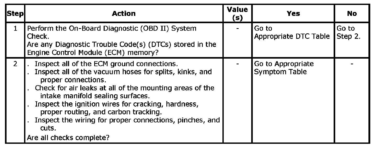 Important Preliminary ChecksCAUTION: Several symptom procedures call for a careful visual/physical inspection. Always perform the visual/physical test first. Visual inspections may lead to correcting a problem without further checks and can save valuable time.