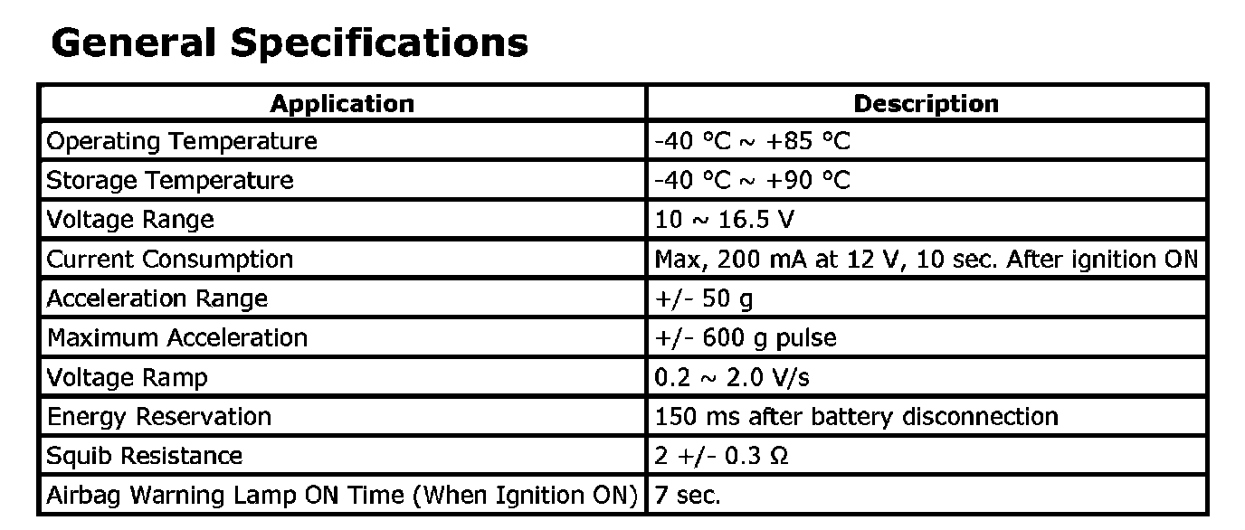 General Specifications: