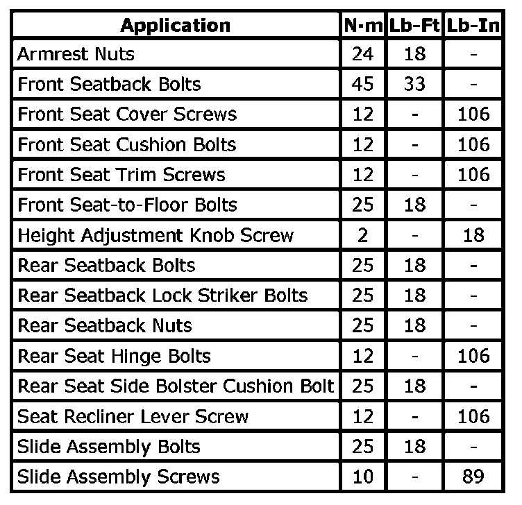 Tightening Torque Specifications: