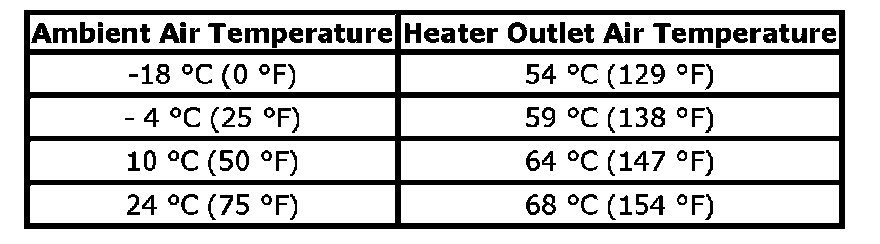 Heater Temperature Specifications: