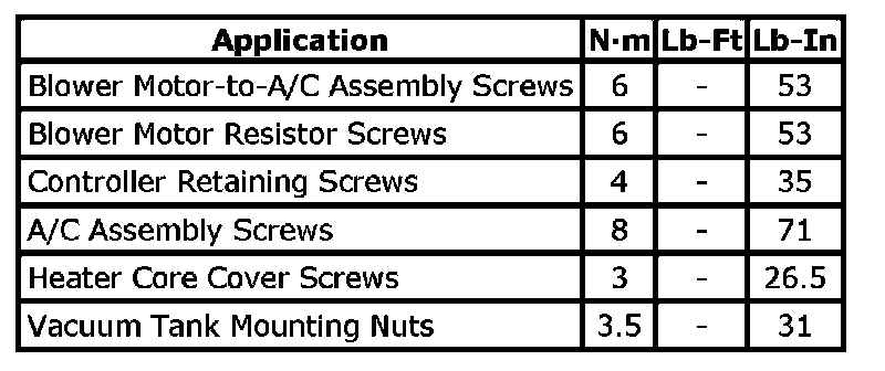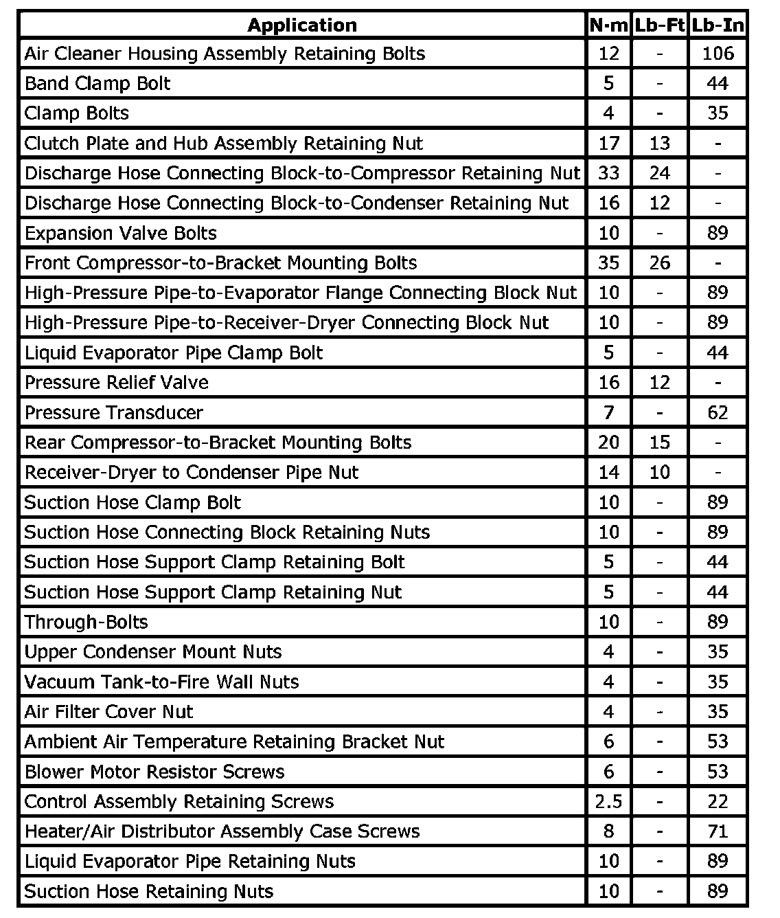 Tightening Torque Specifications: