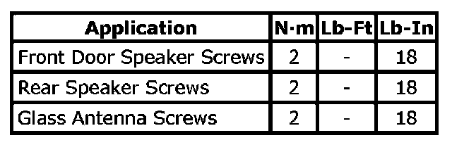 Tightening Torque Specifications: