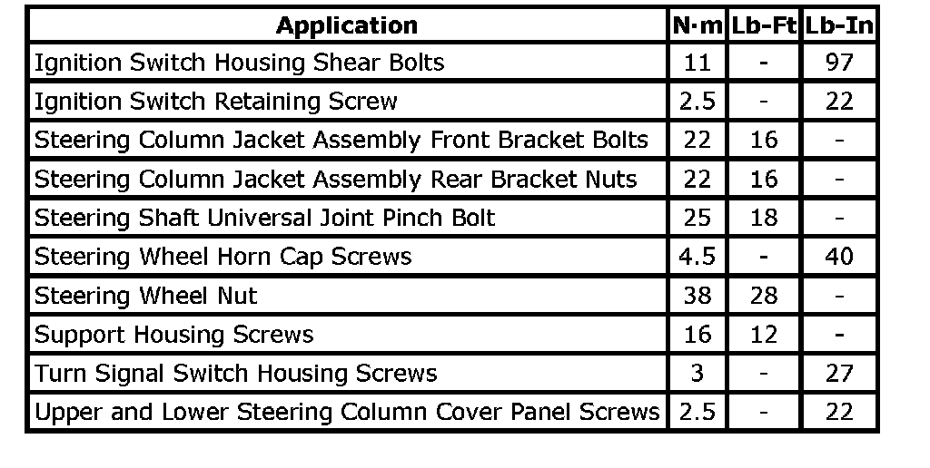 Steering Column Jacket Assembly Rear Bracket Nuts 22 Nm (16 ft. lbs.)