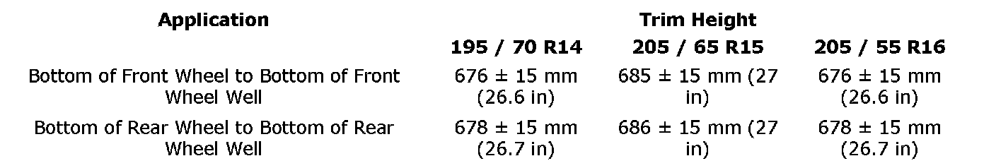 The above alignment specifications are with the vehicle in a normally loaded condition. Prior to inspection or alignment, place a weight of approximately