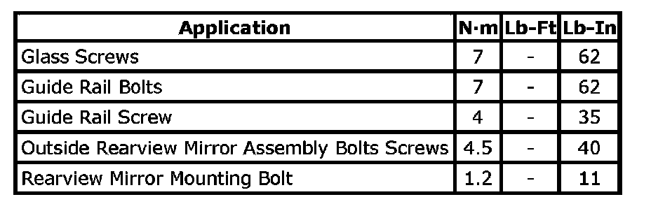 Tightening Torque Specifications: