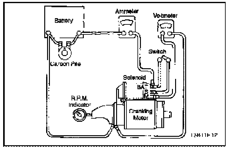 28. Flash a jumper lead momentarily from the solenoid motor terminal to the starter frame, allowing shifting of the pinion in the cranking position, where it will remain until the battery is disconnected.