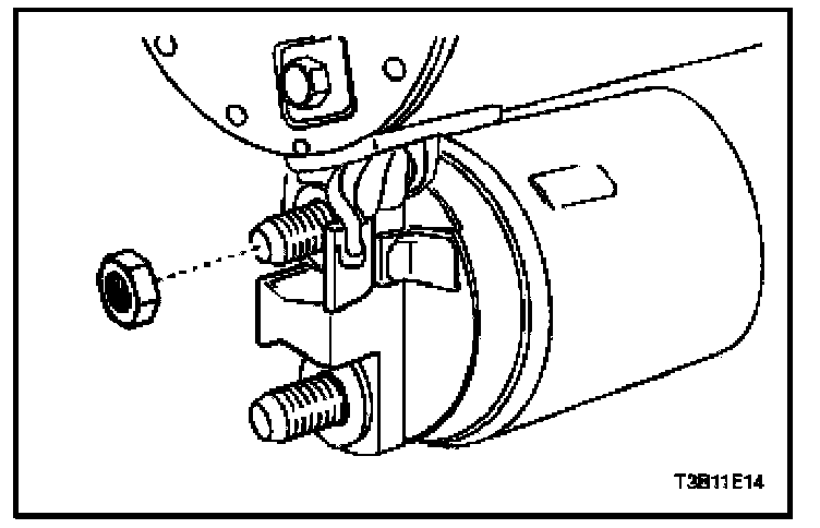 7. Install the field coil connection to the starter terminal. Install the nut.