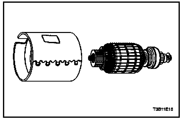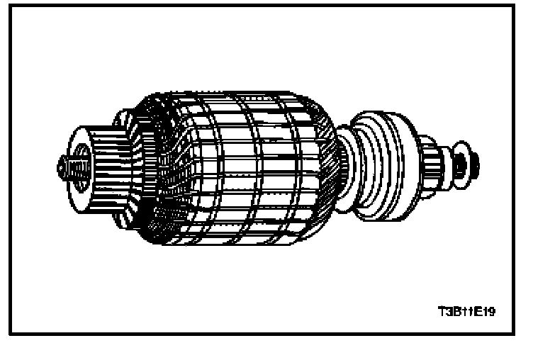 18. If test equipment is available, check the armature for short circuits by placing it on a growler, and holding back a saw blade over the armature core while the armature is rotated. If the saw blade vibrates, replace the armature.