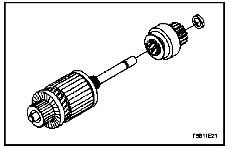 25. When the starter motor is disassembled and the solenoid is replaced, it is necessary to check the pinion clearance.