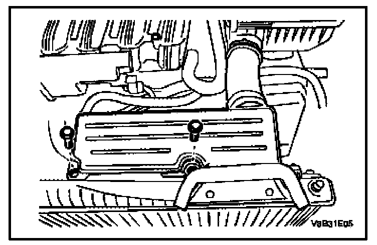 1. Install the starter-to-engine block mounting bolt and the transmission-to-starter mounting bolt.