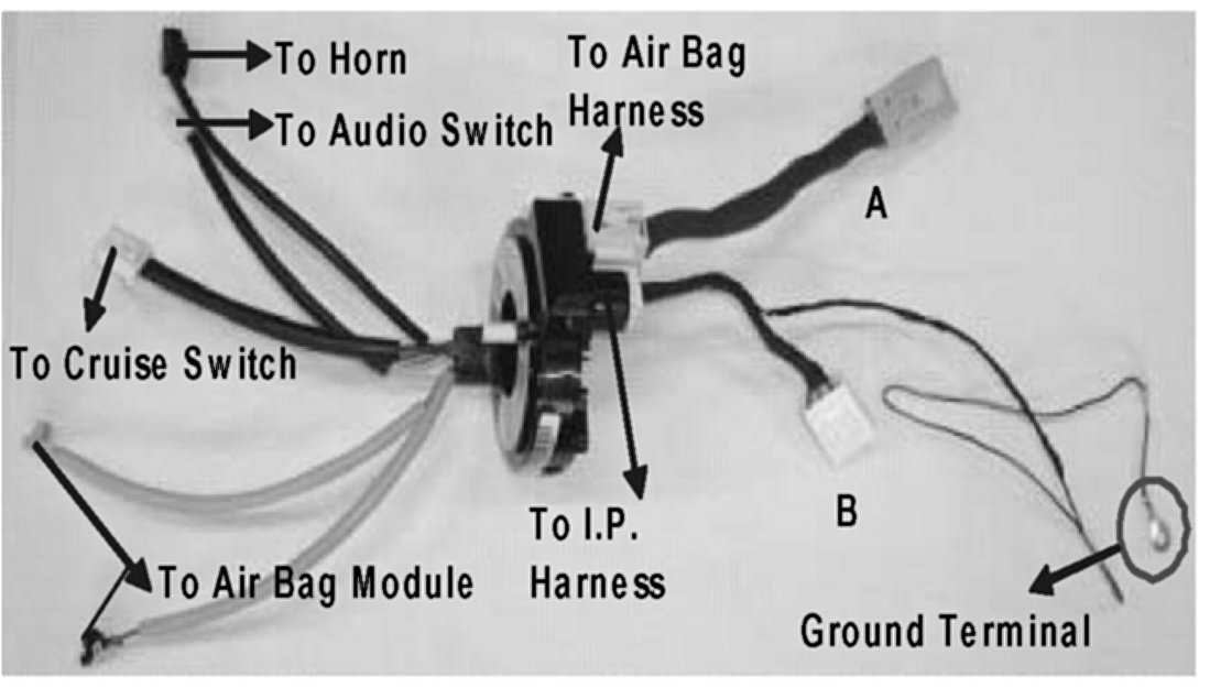 Remove the AIRBAG ADAPTING WIRING HARNESS with the old clock spring if it was added to the affected vehicle as per "KB" Recall. Refer to the Verona Service Bulletin TS 03 02244 for details. Follow step 2 for ground wire location and mounting.