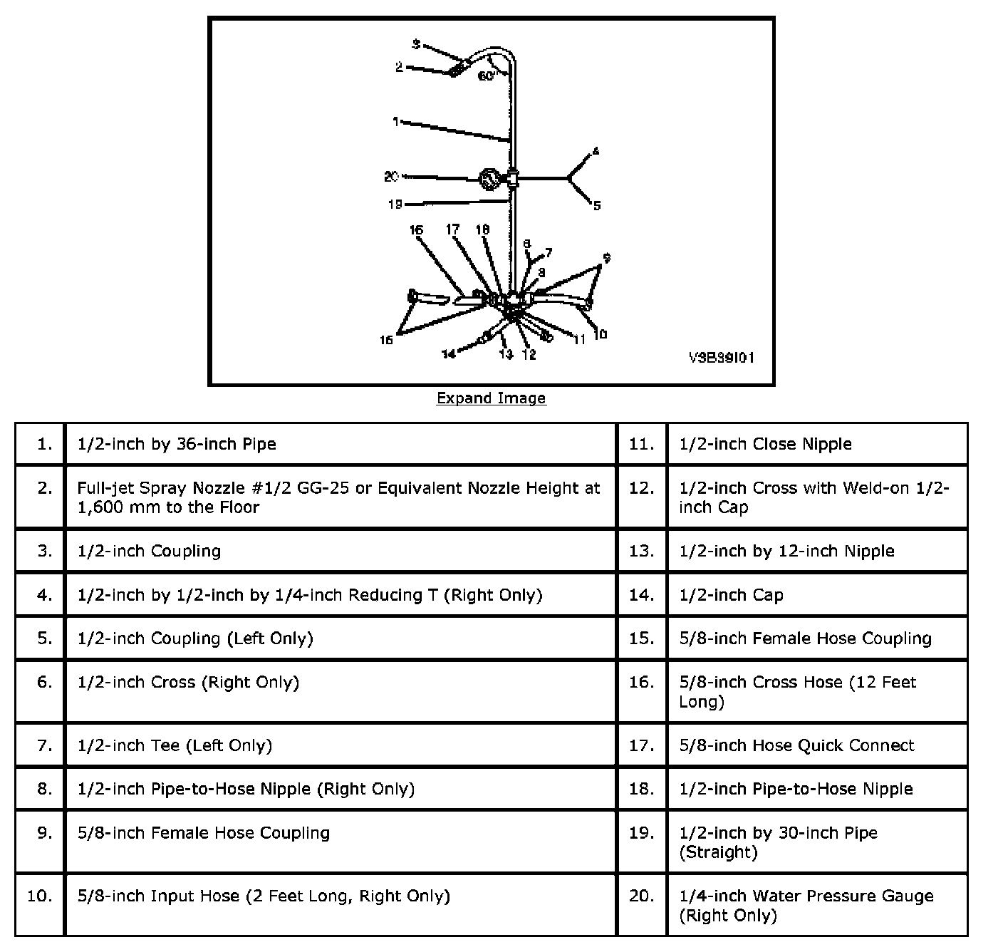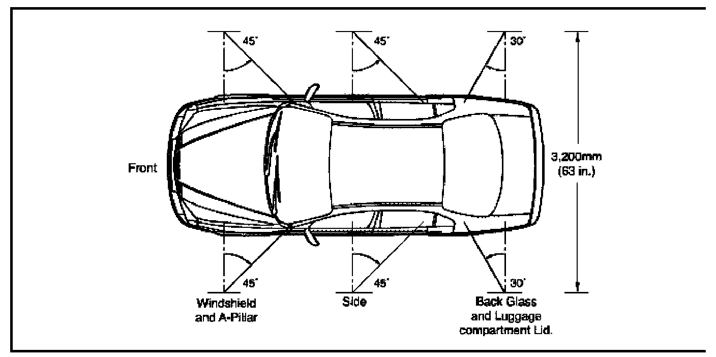 4. If the local water pressure does not allow the required water pressure of 155 kPa (22.5 psi), move both stands closer to the vehicle so that the water spray overlaps.