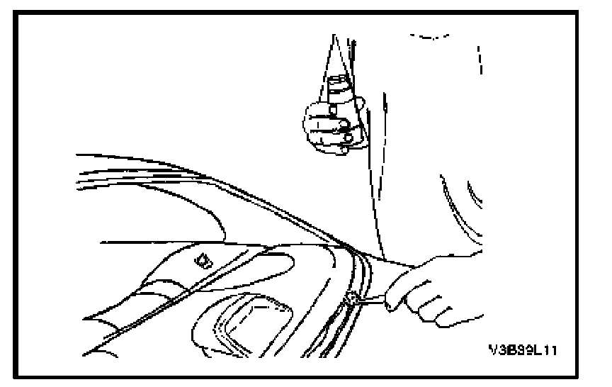 9. Check for waterleaks by pouring water on the rear window. If a leak is found, dry the window and fill the area that leaks with adhesive. If the leak persists, remove the rear window and repeat the entire procedure.