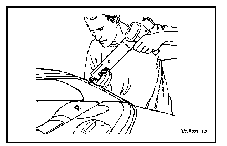4. Using the glass sealant remover J-24402, cut the adhesive around the rear window.