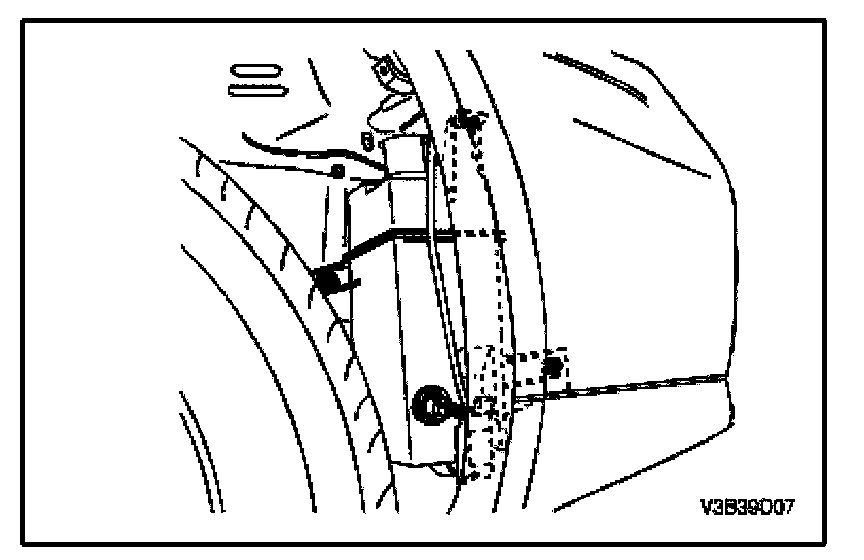 4. Install the front wheel well splash shield. Refer to Front Wheel Well Splash Shield Installation.