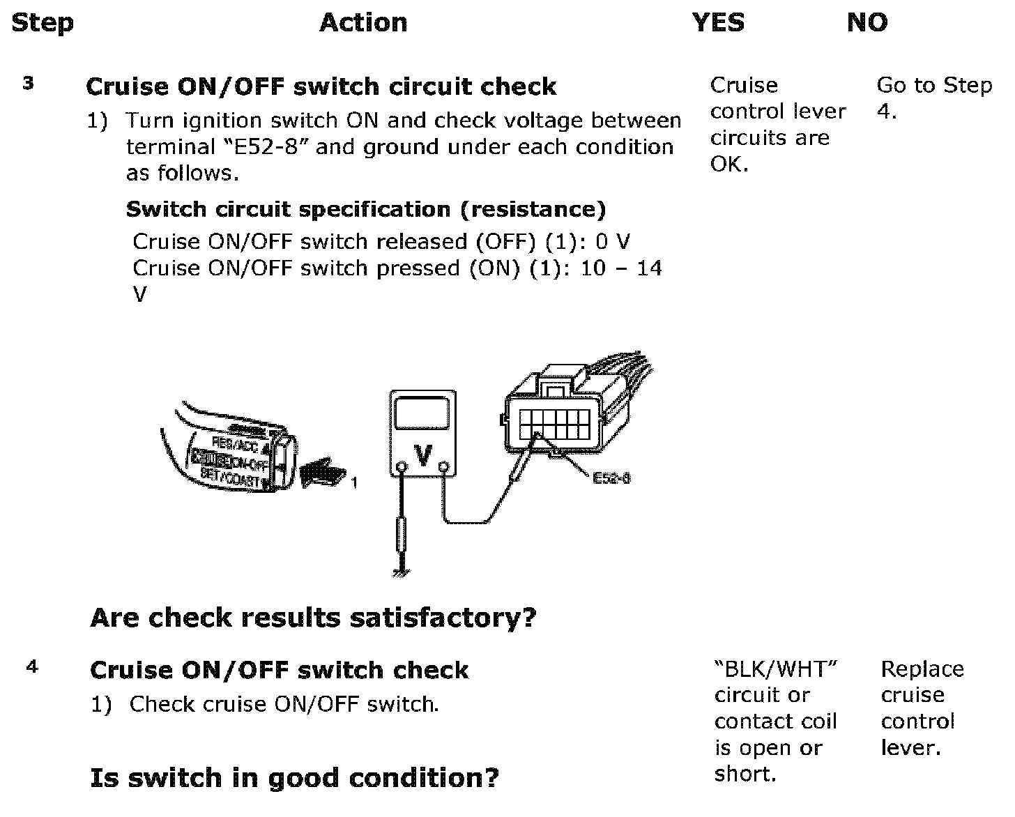 Cruise ON/OFF, Set/Coast, Resume/Accel and Cancel Switches Circuits Check