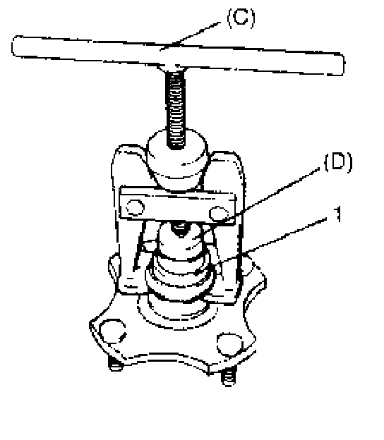6) Pull wheel hub (1) off by using special tools.
