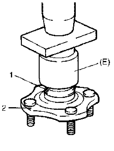 2) Install outside inner race (1) to wheel hub (2) using special tool. Installing direction is as shown.